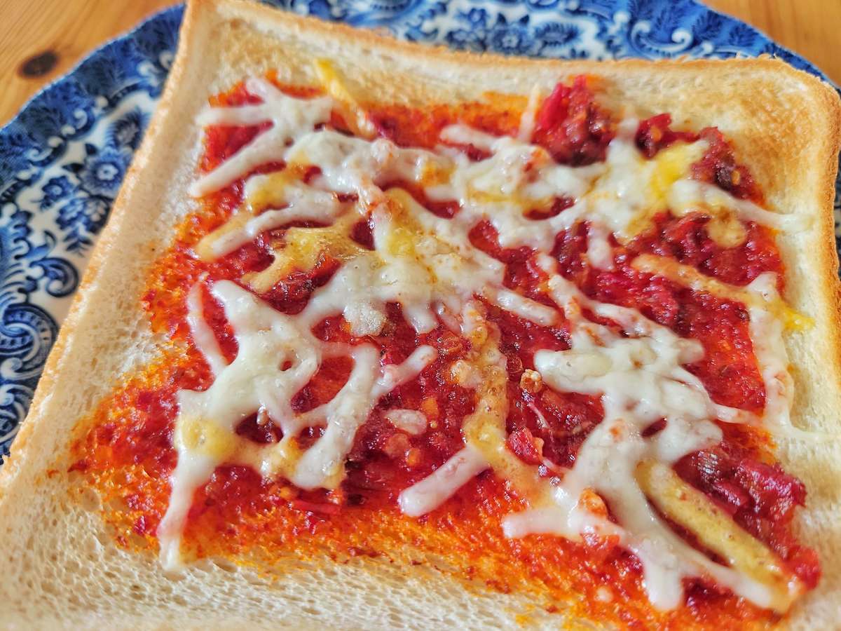 ピリ辛スパイシーで刺激的なトーストの出来上がりです。