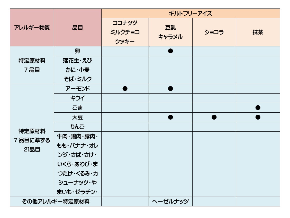 グルテンとは、小麦や大麦などに含まれているタンパク質の一種で、パンやうどんなどのもちもちとした食感は、このグルテンによるものであることは有名です。ギルトフリーアイスは、グルテンフリーで食物アレルギーの原因食物の一つでもある小麦を使用していません。シンプルな食材のみでアイスを作り上げるために、安定剤、保存料も一切使用していませんので、食材そのものの味をご堪能いただけます。