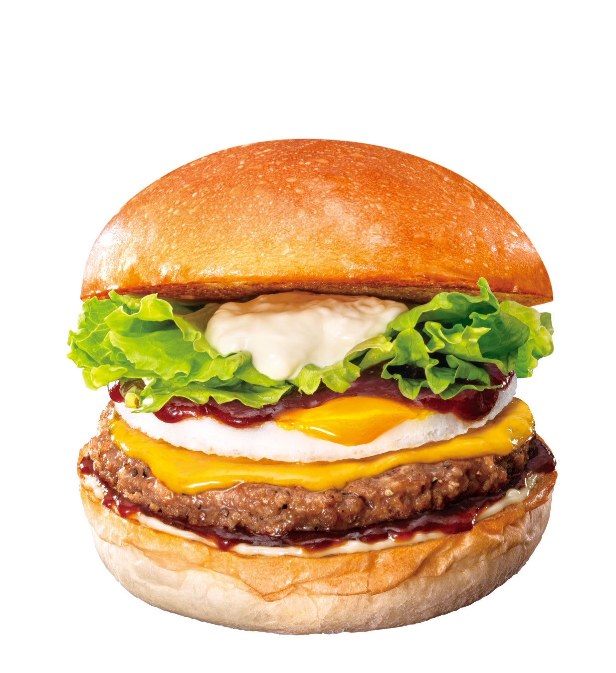 商品概要:ハワイの定番料理“ロコモコ”をバーガーで味わえる一品です。粗挽き牛肉100%のパティに、とろっとした黄身が特長のロッテリアオリジナル半熟風たまごと濃厚でほんのり甘めのデミグラスソースを合わせ、レッドチェダーチーズ、4種類(ゴーダ・チェダー・マスカルポーネ・パルメザン)のチーズをブレンドしたとろ~りチーズソース、レタスなどとともにふんわりもっちり食感が特長のバンズで挟みました。